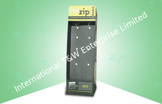 Promoting Corrugated Display Stands , Cardboard Floor Display Stands With Plastic Hook
